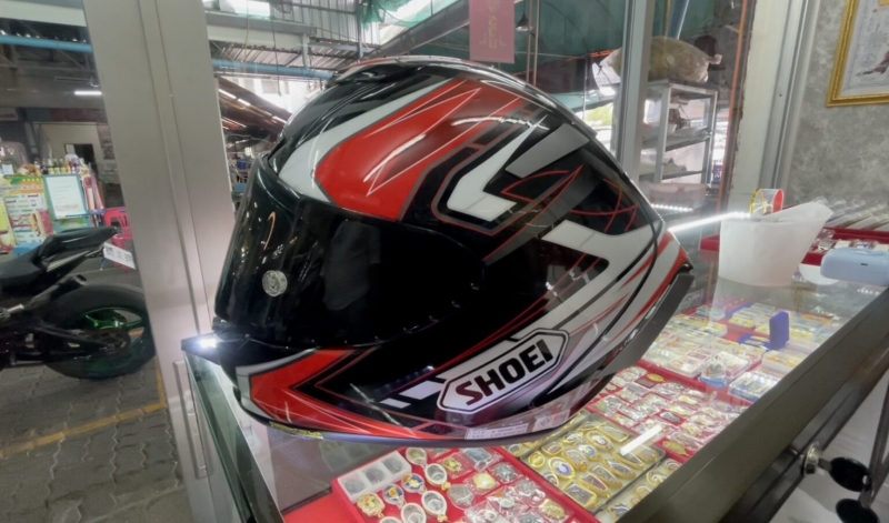 โดยระหว่างนั้นตนที่ไม่ทันได้ระวังตัวและไม่ทันสังเกต เพราะไม่คิดว่าจะมีภัย จึงไม่ห็นว่าตอนเดินออกจากร้าน วัยรุ่นชายคนดังกล่าวได้หยิบหมวกกันน็อกที่วางไว้หน้าร้านติดมือไปด้วย ซึ่งหมวกที่ถูกขโมยไปเป็นหมวกที่ราคาสูงถึง 25,000 บาท ยี่ห้อ SHOEI (โชเอะ) จากนั้นไม่นานหลังจากที่เราโพสต์เรื่องลงในโซเชียล ก็มีคนมาแจ้งว่า วัยรุ่นชายคนดังกล่าว ได้เอาหมวกกันน็อกของตนไปขายให้พลเมืองดีคนหนึ่งในราคา 300 บาท พลเมืองดีคนนั้นก็รู้ว่าหมวกรุ่นนี้ราคาแพง จึงสงสัยว่าทำไมเอามาขายราคาถูกมาก จึงรับไว้พร้อมทั้งขอสำเนาบัตรประจำตัวประชาชน และเบอร์โทรศัพท์ติดต่อของชายคนดังกล่าวไว้เป็นหลักฐาน