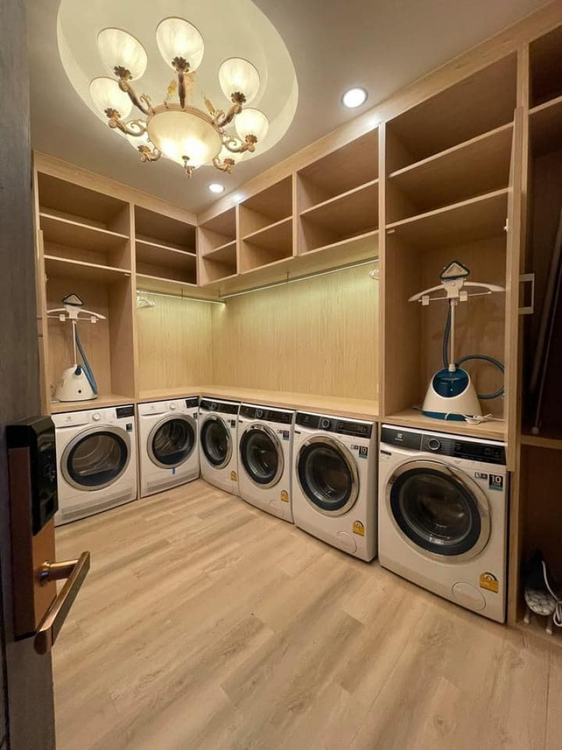 ห้องซักผ้า อบผ้า พร้อมที่รีดผ้าไอน้ำ เตารีดไอน้ำ ใช้ฟรี