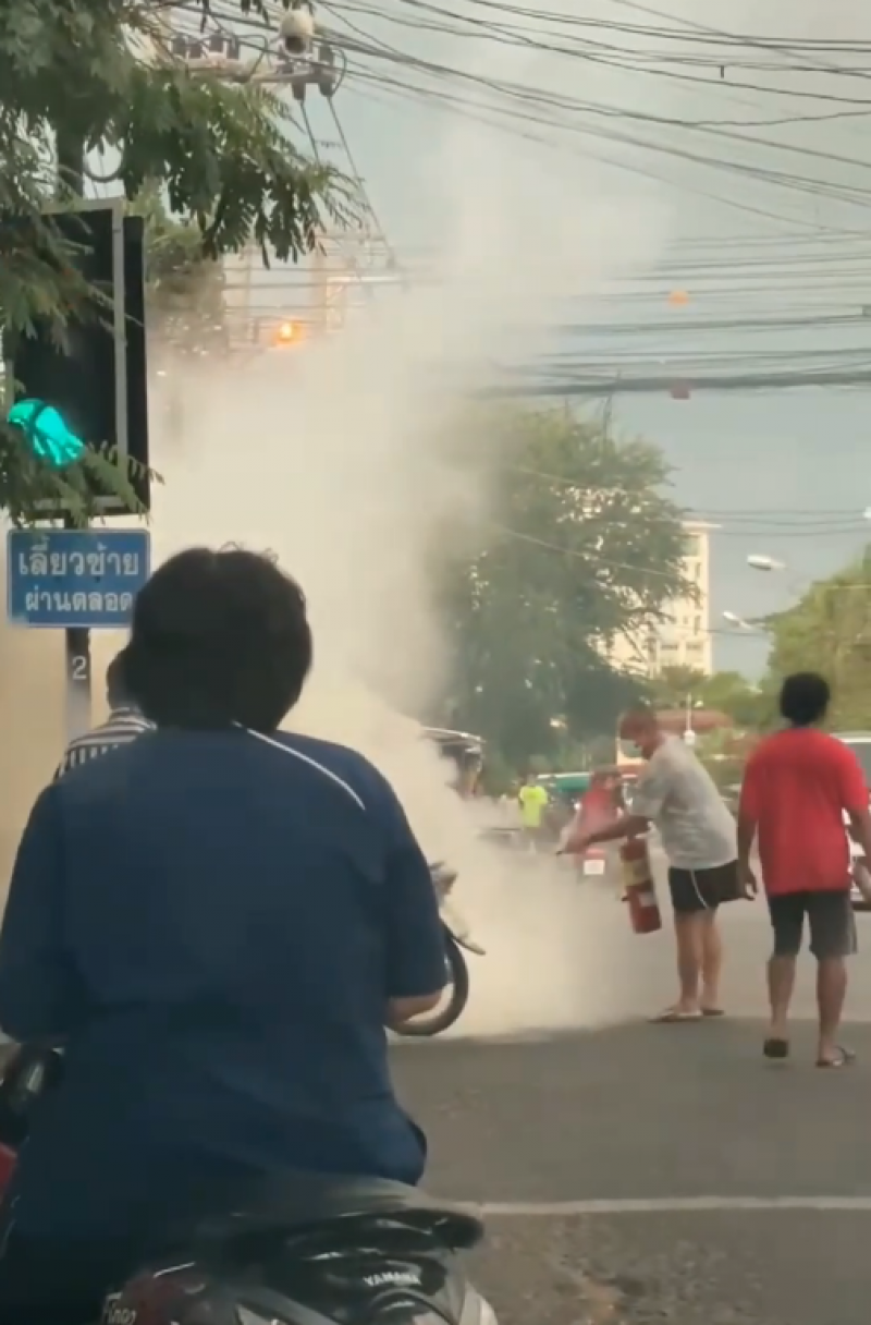 วันที่ 26 มิถุนายน เฟซบุ๊กเพจ เจ๊ม้อยv plus ได้มีการโพสต์คลิปเตือนภัย ฝากระวังด้วยค่ะ ไม่ทราบสาเหตุว่าเกิดจากอะไร จอดไฟแดงอยู่ดีดี เกิดไฟลุกขึ้นมา ควรเช๊คสภาพ จักรยานยนต์ก่อนใช้งานด้วยค่ะ แต่ที่แน่ๆ ได้เห็นน้ำใจคนไทยที่ไม่เคยเลือนหายจากสังคม รถไฟไหม้กลางถนน สงสารน้อง มีลุงใจดีวิ่งเอาถังดับเพลิงมาช่วยน้องแล้วนะคะ สี่แยกตลาดหนองไผ่ล้อม เบื่องต้นคาดว่าระบบไฟฟ้าในรถอาจจะขัดข้อง