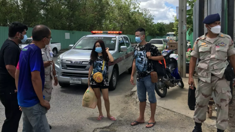 บริเวณริมถนนใกล้ประตูทางเข้า พบสิ่งของสัมภาระบรรจุใส่กระเป๋าและลังข วางเรียงรายเป็นแถวยาว มีแรงงานต่างด้าวจำนวนหนึ่งกำลังเตรียมขนของย้ายออกนอกพื้นที่ เจ้าหน้าที่จึงแจ้งให้แรงงานทั้งหมดขนสิ่งของกลับเข้าที่พัก จากนั้นจึงเรียกให้ผู้ควบคุมดูแลแรงงานซึ่งเป็นตัวแทนของบริษัทซิโน-ไทยฯ ออกมาเพื่อแจ้งคำสั่งห้ามเคลื่อนย้ายแรงงานทั้งหมด ให้ปิดแคมป์ก่อสร้าง และหยุดการก่อสร้างเป็นเวลา 30 วัน ตามคำสั่งของนายกรัฐมนตรี โดยให้ผู้ดูแลรับไปปฏิบัติอย่างเคร่งครัด