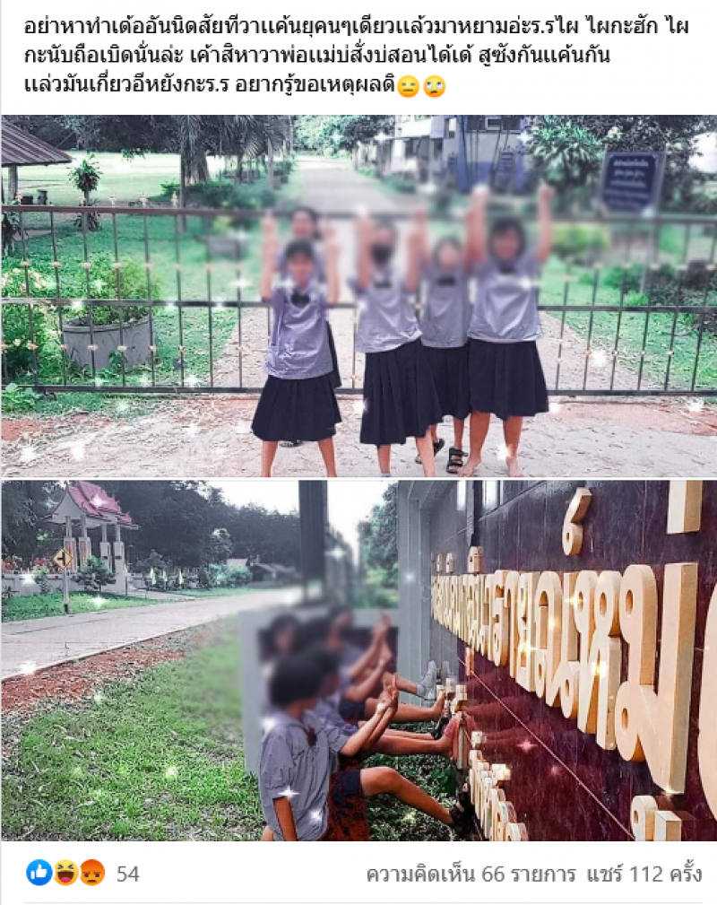 เรียกได้ว่ากลายเป็นเรื่องราวที่ถูกวิพากษ์วิจารณ์อย่างมากในโลกออนไลน์ หลังจากที่ผู้ใช้เฟซบุ๊กรายหนึ่ง ได้มีการโพสต์ภาพแก๊งนักเรียนหญิงกลุ่มหนึ่ง ได้ไปเหยียบป้ายหน้าโรงเรียน ซึ่งเป็นโรงเรียนของคู่อริ โดยผู้โพสต์ระบุว่า อย่าหาทำเด้ออันนิดสัยทีวาเเค้นยุคนๆเดียวเเล้วมาหยามอ่ะร.รไผ ไผกะฮัก ไผกะนับถือเบิดนั่นล่ะ เค้าสิหาวาพ่อเเม่บ่สั่งบ่สอนได้เด้ สูซังกันเเค้นกันเเล่วมันเกี่ยวอีหยังกะร.ร อยากรู้ขอเหตุผลดิ