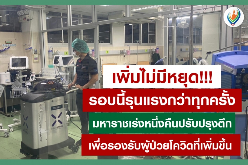 เพจเฟซบุ๊ก โรงพยาบาลมหาราชนครราชสีมา โพสต์ภาพบุคลากรทางการแพทย์ พร้อมระบุข้อความว่า สัปดาห์ที่ผ่านยอดพุ่งจากหลักสิบเป็นหลักร้อยสำหรับคนไข้ โค วิ ด ที่พักรักษาในรพ.มหาราช และผู้ป่ว ยแต่ละรายมีอาการที่ รุน แร งกว่าทุกๆครั้ง พี่น้องร่วมวิชาชีพ ไม่ว่าเป็นหมอ พยาบาล ผู้ช่วยพยาบาล คนงาน ช่าง จนท.อื่นๆ ทำงานกันอย่างหนักหน่วง มีการขยายหอผู้ป่ว ยทำ Cohort ward และICU หลายๆจุดรองรับผู้ป่ว ย โค วิ ด จำเป็นต้องใช้กำลังทรัพย์ในการปรับปรุงพื้นที่เพื่อความปลอดภัยสำหรับเจ้าหน้าที่ และจัดหาอุปกรณ์การแพทย์ในการรักษาเพิ่ม ขอเชิญชวนผู้มีจิตศรัทธา บริจาคช่วยกันเพื่อฟันฝ่า วิกฤติ ครั้งนี้ ไปให้ได้นะคะ