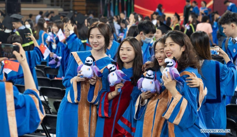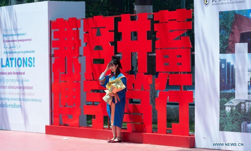 บรรดาบัณฑิตใหม่เข้าร่วมพิธีจบการศึกษาที่มหาวิทยาลัยการศึกษาต่างประเทศปักกิ่ง (BFSU) ที่กรุงปักกิ่ง เมืองหลวงของจีน ในวันศุกร์ (2 ก.ค.) โดยมหาวิทยาลัยแห่งนี้มีหลักสูตรการศึกษาภาษาต่างประเทศที่ได้รับการยอมรับอย่างกว้างขวางในจีน