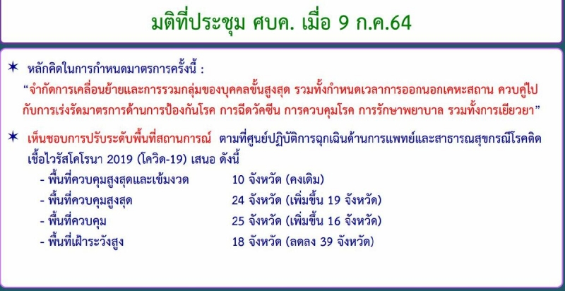 พื้นที่ควบคุมสูงสุดและเข้มงวด10 จังหวัด เพิ่มพื้นที่ควบคุมสูงสุดเป็น 24 จังหวัด เเละเพิ่มพื้นที่ควบคุมเป็น 25 จังหวัด