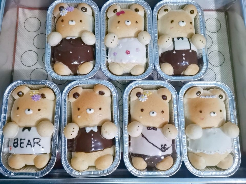 สาวตั้งใจทำขนมปัง น้องหมีห่มผ้า