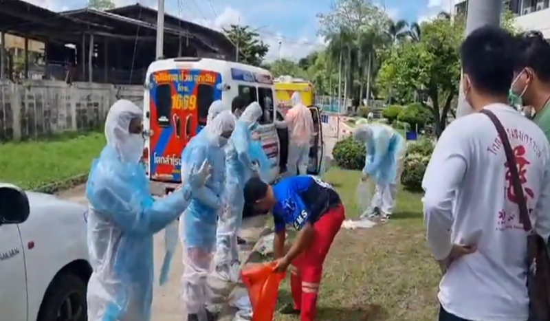 ทางสมาคมกู้ภัยโคกสำโรงสงเคราะห์ ได้ไปรับศพออกจากโรงพยาบาลโคกสำโรง เมื่อเวลา 10.00 น. มาประกอบพิธีฌาปนกิจ ภายในพิธีมีเพียงเจ้าหน้าที่กู้ภัยฯ และพระจำนวน 4 รูป โดยไม่มีญาติของผู้ตาย ซึ่งทางกู้ภัยฯ ทราบมาจากแพทย์ว่า ทางญาติผู้ตาย ครอบครัวก็ติดโควิดกันหมด ไม่สามารถเดินทางมารับศพ และประกอบพิธีฌาปณกิจได้ ขอให้ทาง รพ.ดำเนินการตามความเหมาะสม
