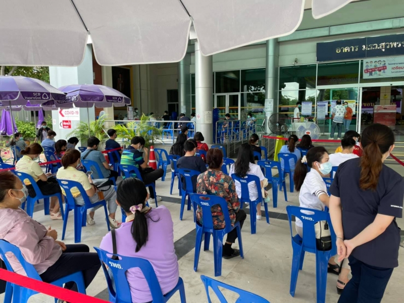 รพ.สนามธรรมศาสตร์ พบหมอ-จนท. ติด cv-19 กักตัวเกือบ 100 คน ผู้ป่วยล้นโรงพยาบาล