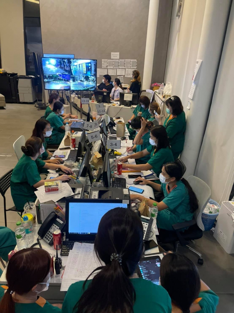 มาตรการป้องกันที่ตามมา คือการเก็บตัวบุคลากรที่เป็นกลุ่มเสี่ยงสูงทำงานใกล้ชิดทั้งวอร์ดเข้ารับการ swab และกักตัวเจ็ดวันในทุกหน่วยงาน เกือบ 100 คนที่เข้าคิวรอรับการตรวจในวันนี้จึงเป็นบุคลากรของโรงพยาบาลเกือบทั้งหมด