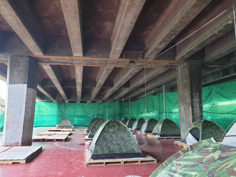 วันที่ 11 กรกฎาคม เฟซบุ๊กเพจ หมอแล็บแพนด้า ได้มีการเผยภาพภาพ หลังจากมีผู้ป่วย cv-19 เพิ่มมากขึ้น ทำให้เตียงในรพ.สนามต่าง ๆ เต็ม แต่ยังมีประชาชนที่ติด cv-19 จำนวนมาก จำเป็นต้องแยกตัวออกจากครอบครัวแต่ไม่มีที่ไป ต้องแยกตัวเองออกมาจากครอบครัว โดยใช้วิธีกางเต็นท์ ชาวบ้านในชุมชนก็มาช่วยกันล้อมผ้า ทำครัวเล็ก ๆ ให้ผู้ป่วยได้กิน #ชุมชนริมทางรถไฟสายท่าเรือ