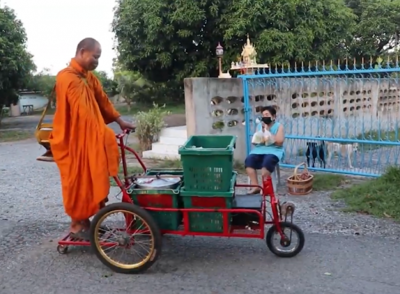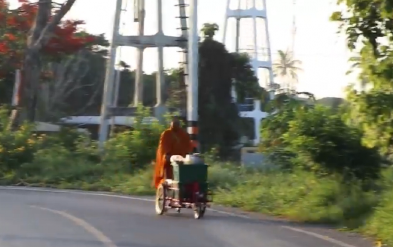 สำนักพุทธ สั่งเบรก พระใช้สกูตเตอร์ไฟฟ้าติดรถเข็นบิณฑบาต