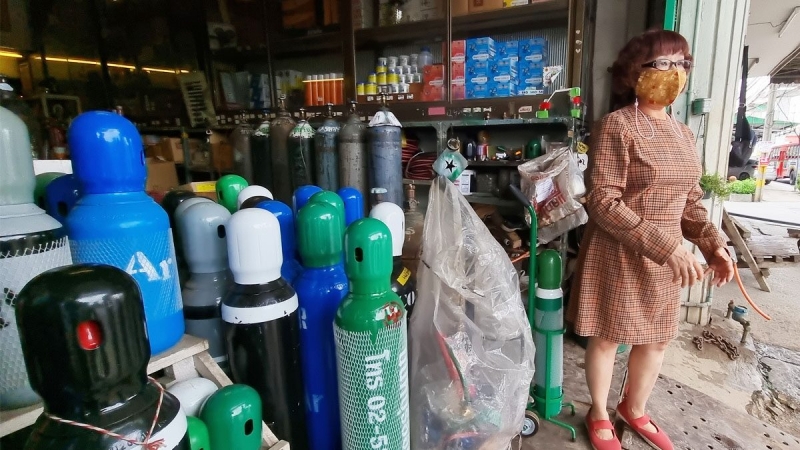 ด้าน เจ้าของร้านทรัพย์ทวีออกซิเจน กล่าวว่า ตอนนี้ทางร้านเองก็เหลือถังออกซิเจนขนาดติดบ้าน ซึ่งใช้หมุนเวียนให้กับลูกค้าเพียงไม่กี่ถังแล้ว ถังขนาดต่างๆ ไม่มีขาย หมดเกลี้ยงทุกขนาด ซึ่งเมื่อประมาณสัปดาห์ที่ผ่านมาหลังสถานพยาบาลที่รักษาเตียงเต็ม ผู้คนต้องรอความช่วยเหลืออยู่กับบ้าน ทำให้ออกซิเจนมีความจำเป็นก็มีลูกค้ามาสั่งซื้อถังออกซิเจนจนเกือบหมดร้าน ทำให้ในตอนนี้ทางร้านต้องรอสินค้าที่สั่งซื้อไปจากประทศปลายทางว่า จะจัดส่งสินค้ามาให้กับทางร้านได้เมื่อไร