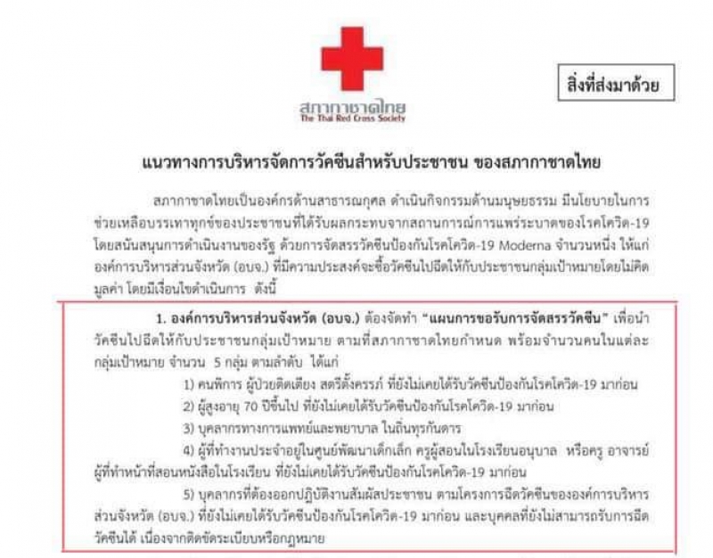 บุคลากรทางการแพทย์และพยาบาล ในถิ่นทุรกันดาร,ผู้ที่ทำงานประจำอยู่ในศูนย์พัฒนาเด็กเล็ก ครูผู้สอนในโรงเรียนอนุบาล หรือครู อาจารย์ผู้ที่ทำหน้าที่สอนหนังสือในโรงเรียน ที่ยังไม่เคยได้รับวัคซีนโควิด-19 มาก่อน,บุคลากรที่ต้องออกปฏิบัติงานสัมผัสประชาชน ตามโครงการฉีดวัคซีนขององค์การบริหารส่วนจังหวัด (อบจ.) ที่ยังไม่เคยได้รับวัคซีนโควิด-19 มาก่อน และบุคคลที่ยังไม่สามารถรับการฉีดวัคซีนได้ เนื่องจากติดขัดระเบียบหรือกฎหมาย