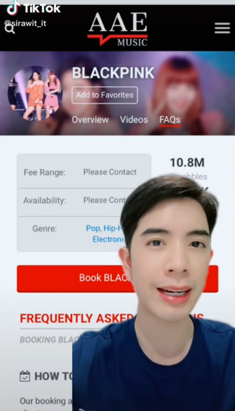 เรียกได้ว่าเป็นอีกหนึ่งเรื่องราวที่เรียกเสียงฮือฮาในโลกออนไลน์ เมื่อผู้ใช้บัญชี Tiktok รายหนึ่งได้ตอบคำถามแฟนคลับ ที่ถามว่า ถ้าอยากจ้าง Blackpink มาโชว์ในงานบวช ต้องทำยังไง ซึ่งแน่นอนว่า การที่จะจ้างวงดังระดับโลกนั้น ไม่ใช่เรื่องง่ายอย่างแต่นอน เพราะทางต้นสังกัดเองก็ต้องเป็นผู้ตัดสินใจเลือกที่จะรับงานไหนด้วย หรืออาจจะไม่รับเลยก็ได้