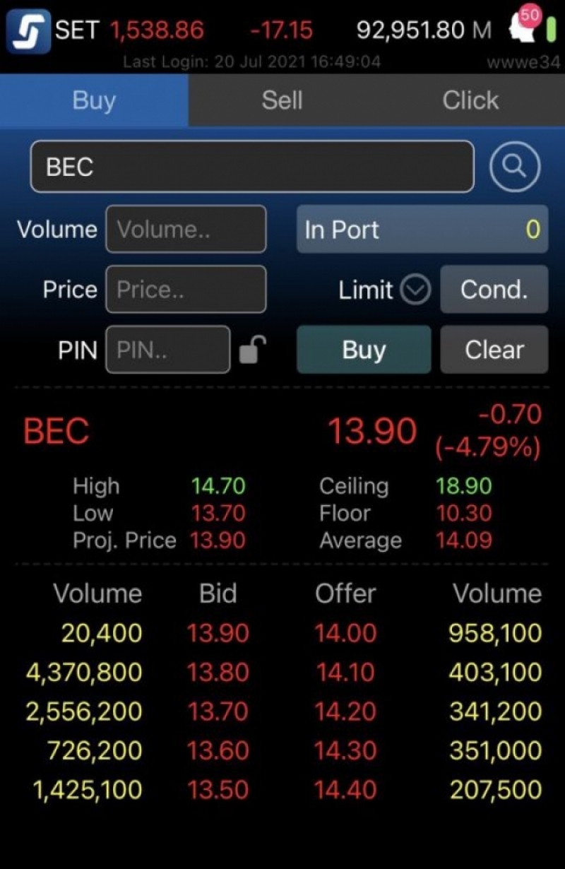 ล่าสุด ทำให้วันนี้ 20 กรกฎาคม 2564 หุ้น BEC : บริษัท บีอีซี เวิลด์ จำกัด (มหาชน) ปิดตลาดอยู่ที่ 13.90 บาท/หุ้น ซึ่งตกลงไปถึง 4.79 เปอร์เซ็นต์