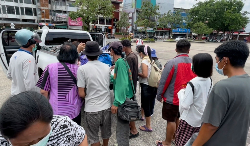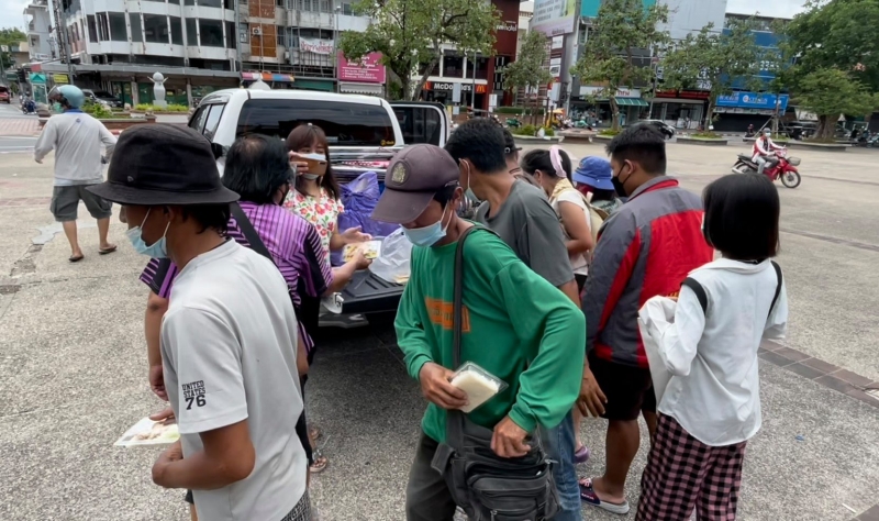 ขณะเดียวกัน จากการสอบถามหนึ่งในคนที่นำอาหารมาแจก บอกว่า จากสถานการณ์ที่เกิดขึ้น ก็เห็นว่าทุกคนต่างได้รับความเดือดร้อน และก็มีคนที่ลำบากกว่า วันนี้จึงได้ทำข้าวกระเพราหมูไข่ต้ม พร้อมกับน้ำดื่ม จำนวนทั้งหมด 65 ชุด เพื่อตั้งใจนำมาแจกจ่ายช่วยเหลือพี่น้องประชาชน ที่ได้รับผลกระทบ ถือว่าก็ช่วยเหลือกันไป แต่อย่างไรก็ตาม ก็อยากขอความร่วมมือกับผู้ที่มารับอาหารให้ป้องกันตัวเอง และปฏิบัติตามมาตรการในการป้องกันด้วย