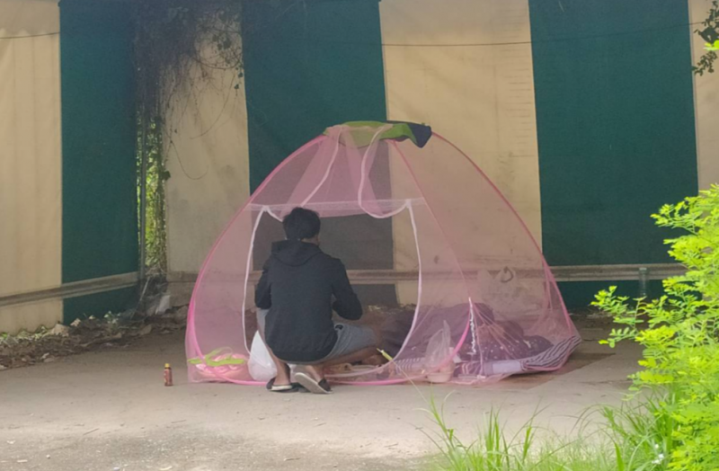 โดยได้ซื้อเครื่องตรวจคัดกรองโรคมาตรวจเอง และพบว่าติดเชื้อโควิด-19 เมื่อวันที่ 22 ก.ค. 64 บุตรชายจึงพยายามประสานหน่วยงานและสำนักงานเขตแล้ว ปัจจุบันพาบิดาออกมาอาศัยนอนด้านนอก ในที่เอกชนตั้งแต่วันที่ 20 ก.ค. 64 หลังจากเข้าพักได้ 1 คืน แต่ถูกไล่ออกจากห้องพัก เนื่องจากเจ้าของห้องพักเกรงว่าจะติดโรคโควิด-19
