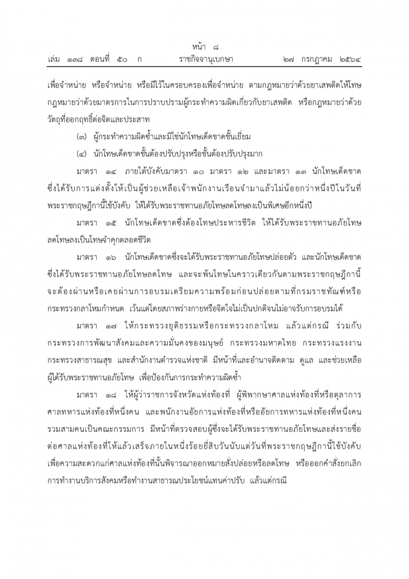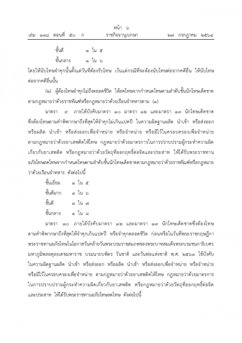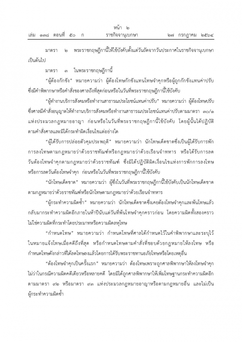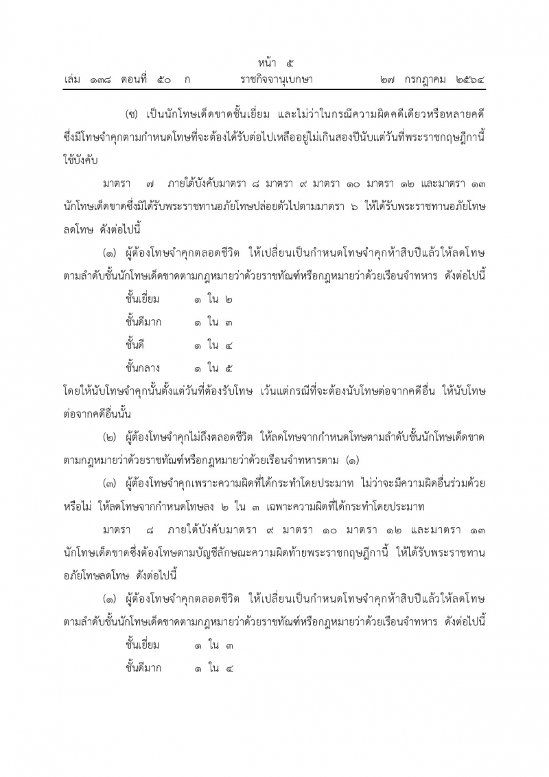วันที่ 27 ก.ค. เว็บไซต์ราชกิจจานุเบกษา เผยแพร่พระราชกฤษฎีกา พระราชทานอภัยโทษ พ.ศ. ๒๕๖๔