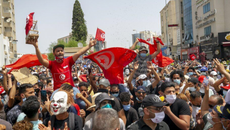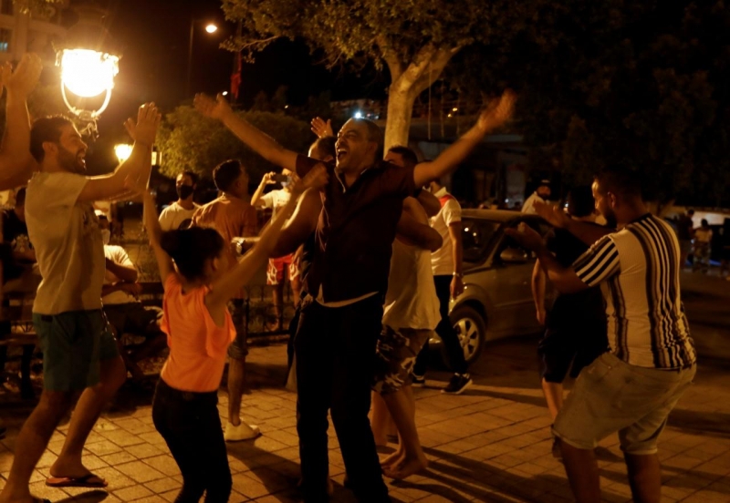 ชาวตูนิเซียจำนวนมาก พากันออกมาเฉลิมฉลองและบีบแตรรถยนต์บนท้องถนน ในกรุงตูนิส เมืองหลวงของประเทศ หลังประธานาธิบดีคาอิส ไซเอด ออกคำสั่งปลดนายกรัฐมนตรีฮิเชม เมชิชี ออกจากตำแหน่ง พร้อมระงับการประชุมของรัฐสภา