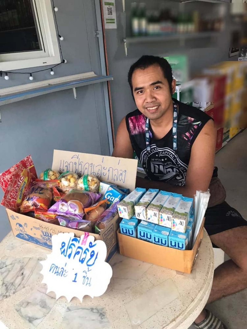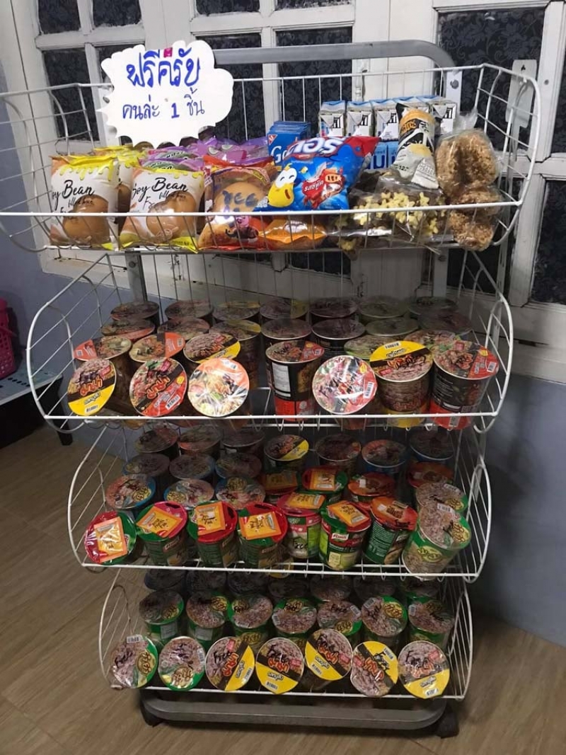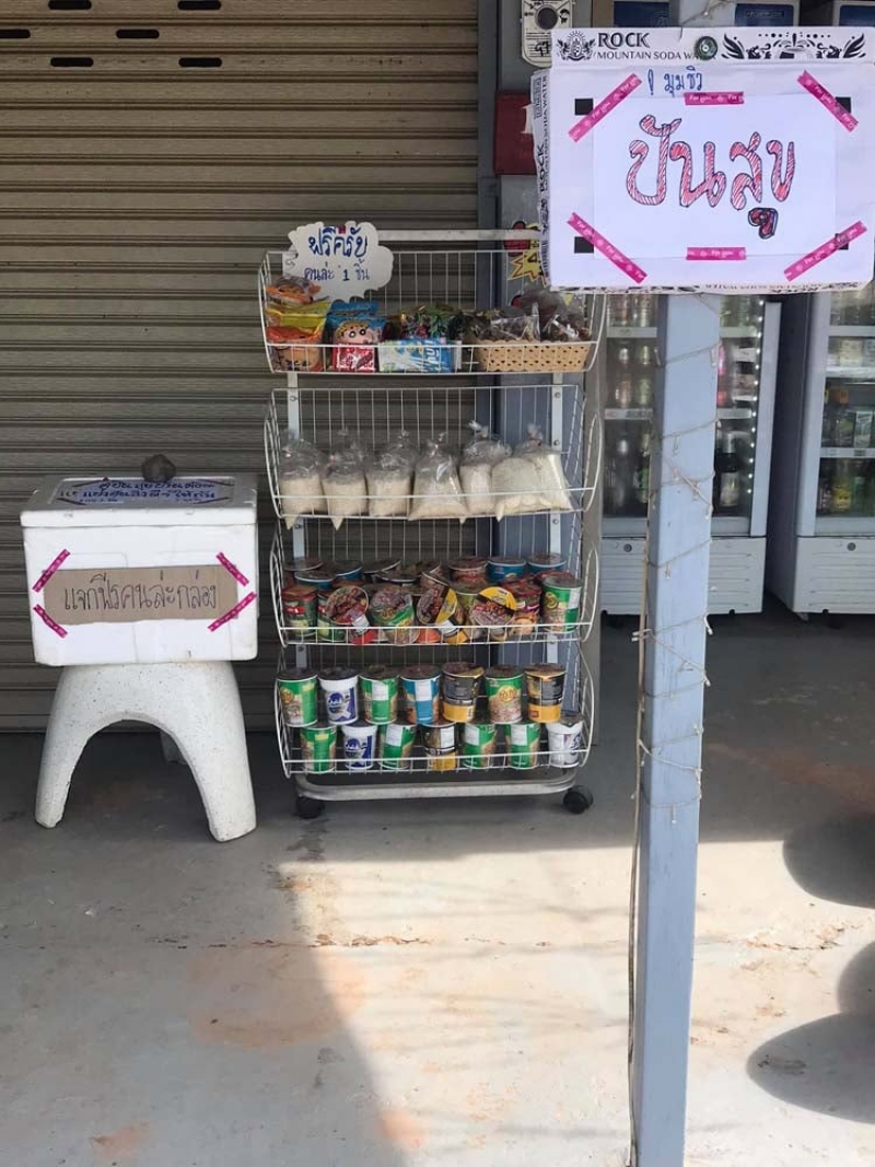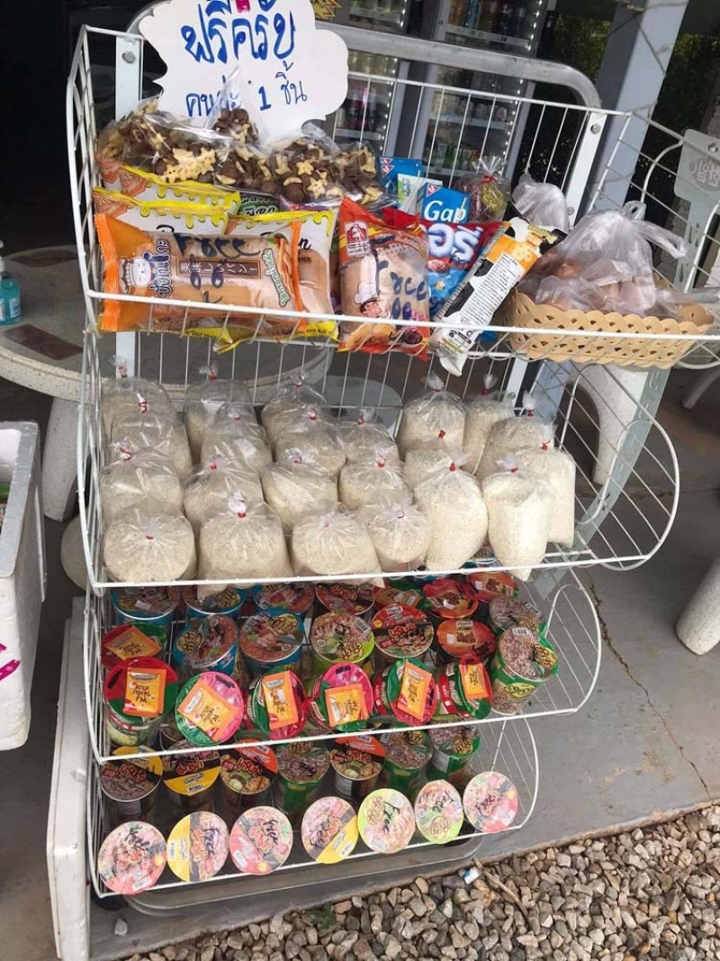 ชื่นชมเจ้าของร้านขายของชำ ชื่อร้านมุมชิว อยู่แถวบ้านต้อน อำเภอรีคนวาปี จังหวัดหนองคาย ที่ได้วางชั้นปันสุขหน้าร้านให้คนสามารถมาหยิบไปทานได้ได้ฟรี