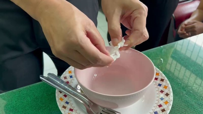 ด้าน น.ส.วาริพินทุ์ จะนันท์ อายุ 57 ปี แม่ค้าขนมจีน กล่าวว่า แม่แฟนสามีเป็นคนคิดค้นสูตรขนมจีนนี้ขึ้นมา ด้วยการเอาเนื้อไก่ผสมกับเนื้อปลา กากใยที่พบคล้ายกับกระดาษทิชชู่ เป็นเนื้ อไก่ ตัวใหญ่ ถ้าไก่ตัวเล็กจะไม่มีกาก หลังจากเห็นมีคนโพสต์ ตั้งใจจะแจ้งความเอาผิด พรบ.คอมฯ แต่เมื่อเด็กขอโทษ ก็ยกโทษให้