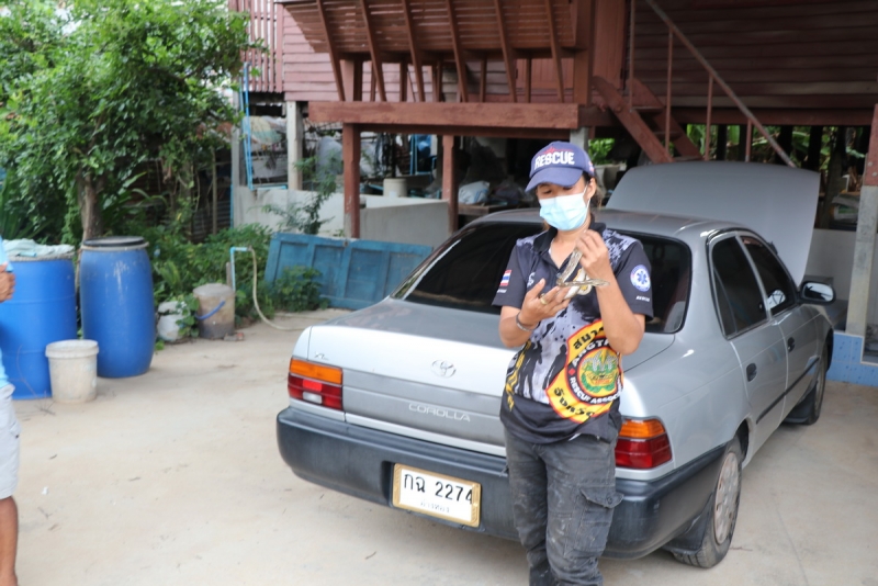 จึงขับรถยนต์เข้ามาจอดที่บริเวณบ้านและในช่วงเย็นได้เปิดห้องเครื่องตรวจสอบอีกครั้ง พบเจ้างูเหลือมเข้ามาแอบซุกซ่อนที่เดิมอีก ไล่เท่าไหร่ก็ไม่ยอมออกไป นอนขดตัวอยู่ในบริเวณห้องเครื่องยนต์ จึงขอความช่วยเหลือเจ้าหน้าที่กู้ภัยมาช่วยจับ