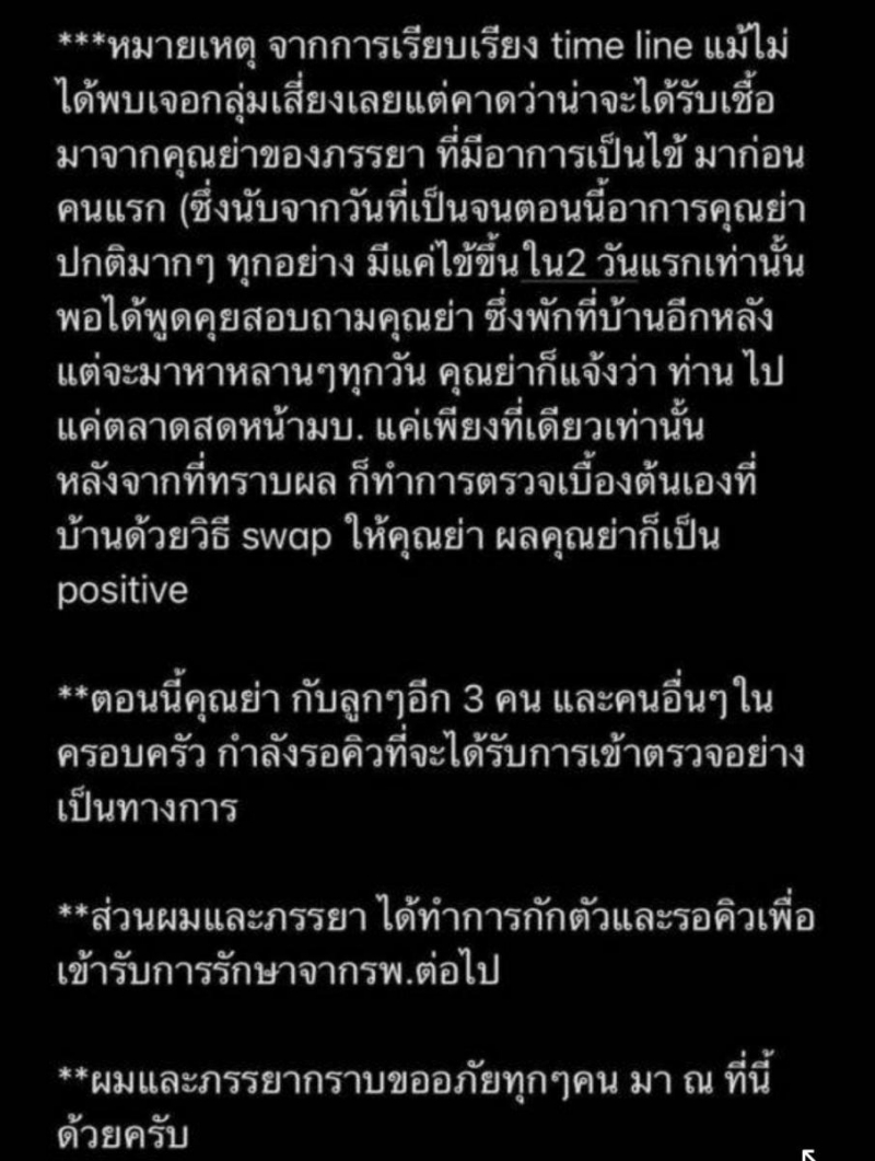 ล่าสุดมีรายงานว่าทางเพจ Gossipstar เผยว่า ผลตรวจของลูก ทั้ง 3 คนออกมาแล้วว่า พบ เชื้ อ เช่นกัน ตอนนี้ทุกคนอยู่ในการดูแลของแพทย์เรียบร้อยแล้ว