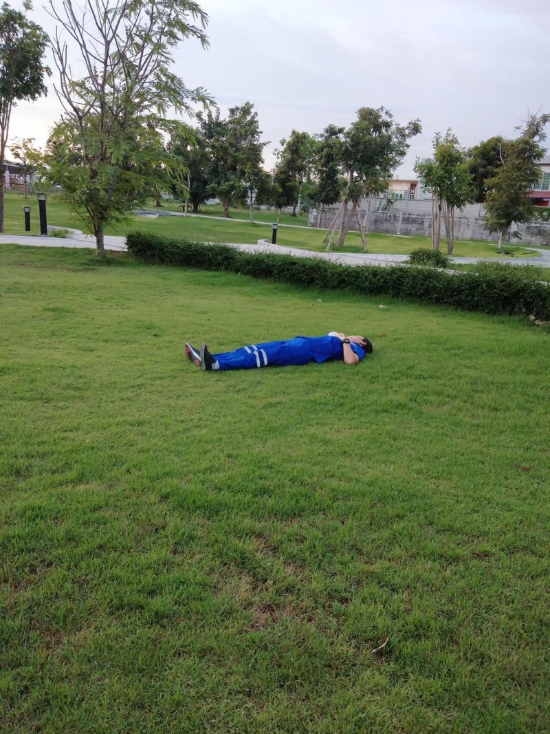 เห็นพยาบาลคนหนึ่งเดินออกมาจากโรงบาลแล้วนอนลงไปพักตรงพื้นหญ้าในสนามเราเลยถามว่าเหนื่อยมั้ยครับพยาบาล.เขาตอบเหนื่อยมากพี่ แต่หยุดไม่ได้เพราะคนไข้รออีกจำนวนมากเขาบอกทำงานวันละ16ชั่วโมง.. ยืนตลอดและเดินแถมจะไม่ได้นั่ง ไม่กล้ากลับไปหาครอบครัวเพราะกลัวเอาไปติดเขา