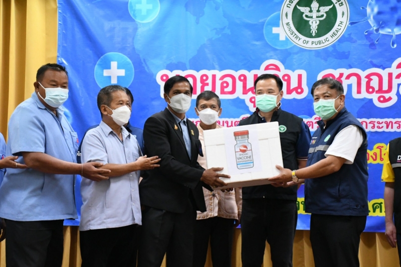 วันที่ 7 ส.ค. 2564 ที่ รพ.ท่าตะโก จ.นครสวรรค์ นายอนุทิน ชาญวีรกูล รองนายกรัฐมนตรี และรัฐมนตรีว่าการกระทรวงสาธารณสุข (สธ.) พร้อมด้วย นพ.เกียรติภูมิ วงศ์รจิต ปลัด สธ. และ นพ.โอภาส การย์กวินพงศ์ อธิบดีกรมควบคุมโรค ร่วมมอบวัคซีน พื่อฉีดเป็นบูสเตอร์โดสบุคลากรทางการแพทย์และฉีดสูตรผสมซิโนแวค-แอสตร้าเซนเนก้าในอาสาสมัครสาธารณสุขหมู่บ้าน (อสม.) จ.นครสวรรค์