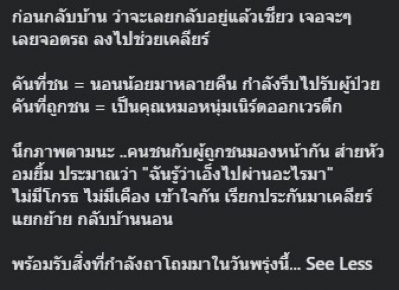 คันที่ชน = นอนน้อยมาหลายคืน กำลังรีบไปรับผู้ป่วย