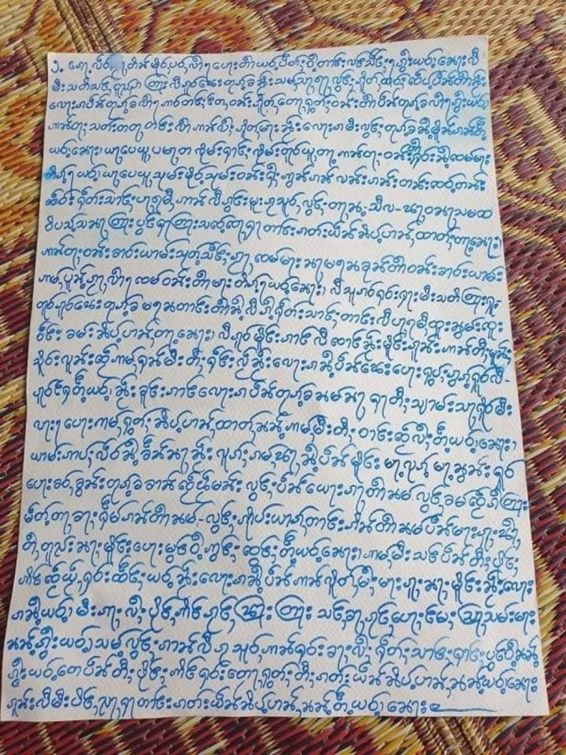 วันที่ 7 ส.ค. 64 ที่ผ่านมาเฟซบุ๊ก พระครูสมุห์นทีเทพ จิรวฑฺฒโณ วัดหนองปึ๋ง จังหวัดเชียงใหม่ ลูกศิษย์พระครูบาบุญชุ่ม ได้นำจดหมายที่พระครูบาบุญชุ่มเขียนในถ้ำ เป็นภาษาไทใหญ่ มาแปลเป็นภาษไทย ระบุว่า