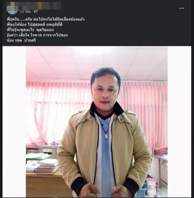 ทั้งนี้เพื่อนในที่ทำงานของ นายรชต เมื่อรู้ข่าวต่างโพสต์ข้อความอาลัยต่อการจากไปอย่างไม่ตั้งตัว อาทิ ต่อจากนี้ไป ก็เหลือแต่ความทรงจำที่ดีๆต่อกัน..ขอให้น้องชายของพี่จงไปสู่สุขคติ...อย่าห่วงข้างหลังน๊ะ..เดียวพวกพี่-น้องช่วยกันสานต่องานให้..หลับให้สบายน๊ะน้องรัก