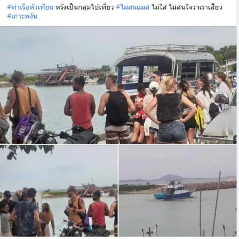 วันที่ 14 ส.ค. จากกรณีที่ผู้ใช้เฟซบุ๊กชื่อว่า ธนพล เกตุแก้ว โฟสต์ลงเฟซบุ๊กกลุ่ม เกาะพงัน พร้อมภาพกลุ่มนักท่องเที่ยวชาวต่างชาติทั้งชายและหญิง รวมกลุ่มยืนกันอยู่ที่ท่าเรือแห่งหนึ่งบนเกาะพะงัน มีข้อความว่า #ท่าเรือหัวเทียน หรั่งเป็นกลุ่มไปเที่ยว #ไม่สนแมส ไม่ใส่ ไม่สนใจว่าเราเสีย ว #เกาะพงัน