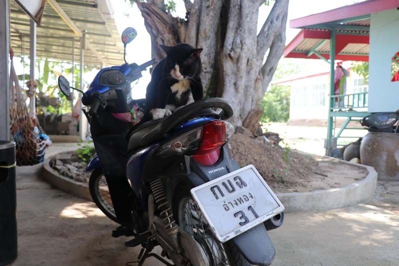 ที่บริเวณวัดใหม่โคกมะรุม ต.ม่วงเตี้ย อ.วิเศษชัยชาญ จ.อ่างทอง หลายคนต่างจับจ้อง เมื่อพบว่าเจ้าโทน แมวแม่ตะเคียน แอบขึ้นไปนอนเล่นที่บนรถจักรยานยนต์.หมายเลขทะเบียน กบฉ อ่างทอง 31 หลายคนไม่พลาดส่องเลข เพื่อนำไปซื้อรางวัล