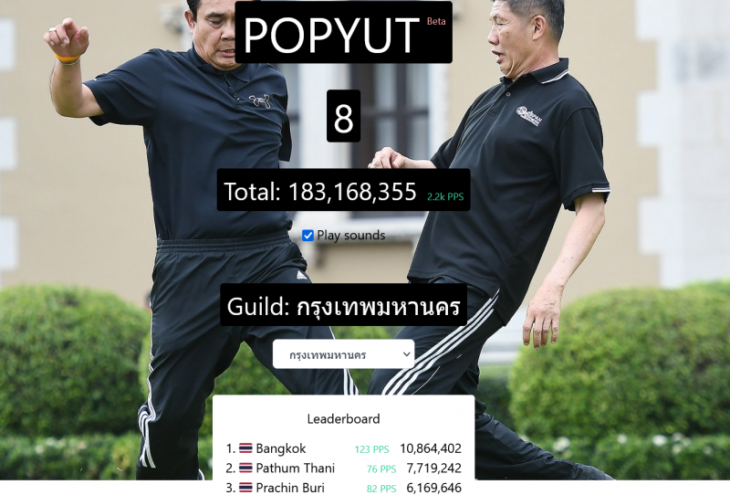 แต่ทว่าาสุดเมื่อวันที่ 17 ส.ค. ผู้พัฒนาเว็บไซต์ของไทย ก็ได้ผุดเกมใหม่ล่าสุดอย่าง POPYUT ขึ้นมา โดยตัวเกมมีหลักการเล่นแสนง่ายเหมือน POPCAT สามารถเข้าไปเล่นผ่าน เว็บไซต์ prayut.click ซึ่งแต่ละคลิก จะมีการเปลี่ยนท่าทางของ พล.อ.ประยุทธ์ จันทร์โอชา ซึ่งได้นำภาพเมื่อครั้งเล่นฟุตบอล นำข้าราชการออกกำลังกาย ที่สนามหญ้า หน้าตึกไทยคู่ฟ้า เมื่อ 14 ธ.ค. 59 มาทั้งหมด 4 ภาพ แถมแต่ละครั้งที่กดครบ 100 ครั้ง จะมีเสียง ของนายกฯ มาประกอบด้วย