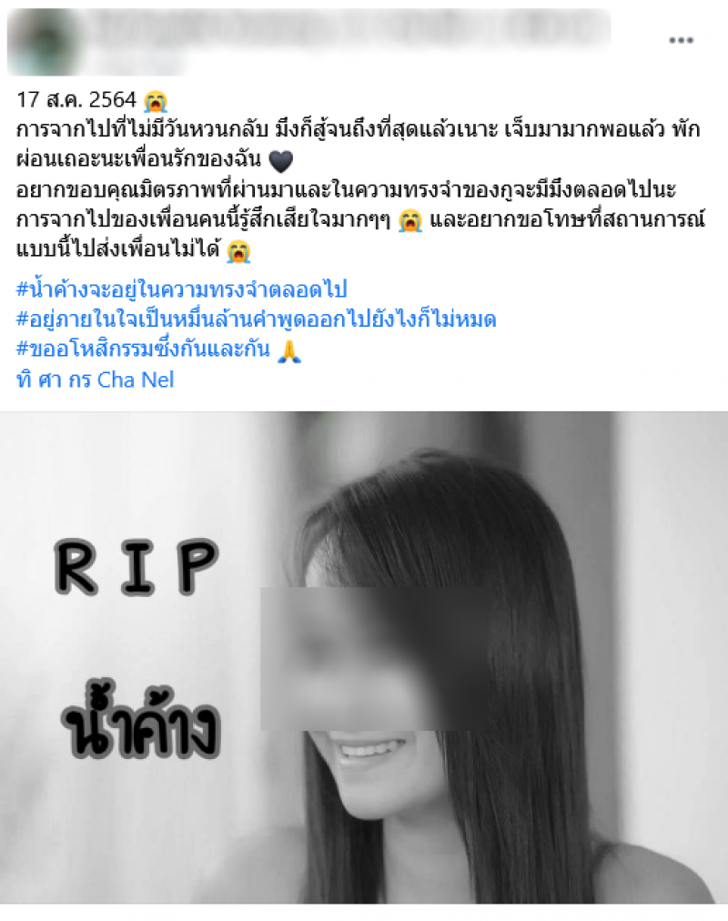 ล่าสุด วันที่ 18 ส.ค.64 เพื่อนของน้องน้ำค้าง โพสต์ข้อความผ่านทางเฟซบุ๊ก ระบุว่า 17/08/2564 21:51 เพื่อนหลับไหล…ไปตลอดกาล ไปอยู่โลกใบใหม่นะเพื่อน Rip น้ำค้าง ทิศากร” โดยมีผู้เข้าไปแสดงความเสียใจกับครอบครัวเป็นจำนวนมาก