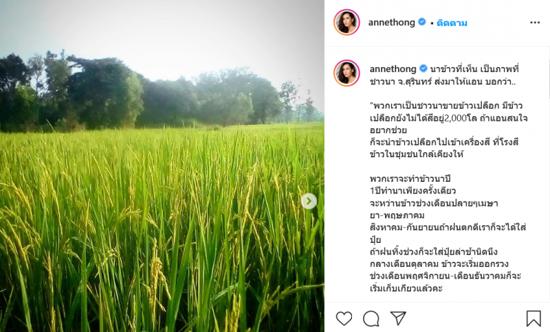 แอน ทองประสม เหมาข้าวสาร 2 ตัน ข่วยเหลือชาวนา