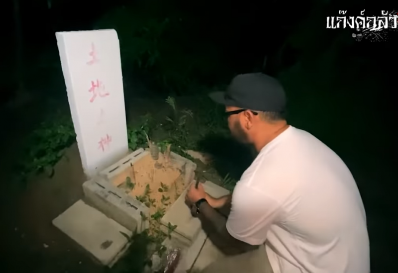โดยในคลิปเรื่องราวของ สองหนุ่มพิธีกร เอ๊ด และ โอบิตะ ที่เข้าไปลองท้าทายสิ่งลี้ลับ ด้วยการลงไปนอนในหลุมพักศพหลุมหนึ่ง ก่อนการเลียนแบบพิธีกรรมล้างหน้าศพ ด้วยการเฉาะมะพร้าวเอาน้ำมะพร้าวเทใส่ในหลุมที่มี โอบิตะ นอนอยู่