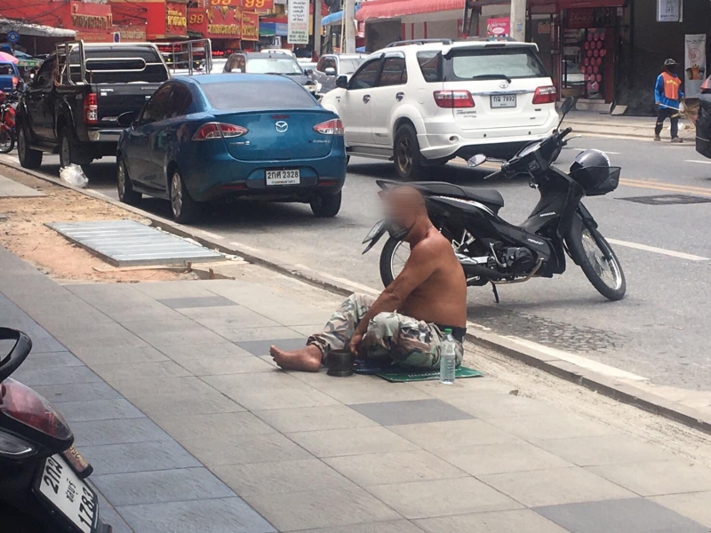 เฟซบุ๊กเพจ สยามชล นิวส์ ได้มีการรายงานว่า เมื่อเวลา 15.00 น.วันที่ 22 สิงหาคม 2564 ผู้สื่อข่าวได้รับแจ้งจากประชาชนว่า ในพื้นที่เขตเมืองพัทยา อ.บางละมุง จ.ชลบุรี มีขอทานออกมานั่งอยู่ริมถนน ขอเงินจากผู้คนที่สัญจรผ่านไปมา เป็นจำนวนมาก เมื่อลงพื้นที่ตรวจพบว่า มีผู้ชายลักษณะพิกา รแขน นั่งถือแก้ว อยู่บริเวณริมถนนพัทยาใต้ เมื่อมีคนเดินผ่านก็จะยกมือไหว้ขอเงิน