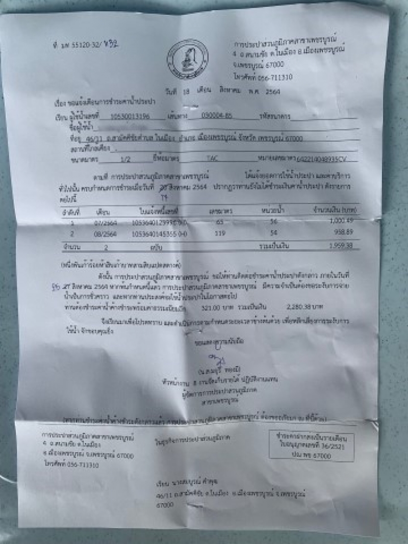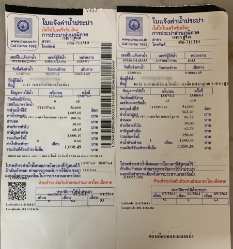 ที่หมู่บ้านในซอยสามัคคีชัย 3 เป็นบ้านทาวเฮ้าส์สองชั้น เลขที่ 46/11 ซอยสามัคคีชัย 3 ต.ในเมือง อ.เมือง จ.เพชรบูรณ์ เป็นบ้านพักอาศัย ไม่ได้จำหน่ายน้ำ ไม่ได้รับจ้างซักผ้า และไม่ได้เป็นสมาคม/มูลนิธิแต่อย่างใด แต่เหตุไฉนทำไมค่าน้ำประปาถึงได้แพงเกินกว่าเหตุ ว่า หลังจากผู้ใช้น้ำได้รับบิลค่าน้ำประจำเดือน กรกฎาคมและสิงหาคม 2564 รวม 2 เดือน ที่มีจำนวนเงินที่ต้องชำระสูงถึง 1,959 บาท ซึ่งมากกว่าของเดือนที่แล้วแบบไม่น่าเชื่อ (เคยจ่ายไม่เกิน 300 กว่าบาท/เดือน)
