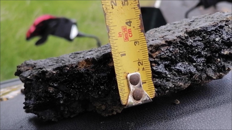 พบเป็นถนนลาดยาง แตก ออกมาเป็นก้อนๆ ตลอดระยะทางเกือบทั้งเส้น บางที่มีหลุมลึกประมาณ 25 เซนติเมตร บางที่ยางปูดนูนยกผิดรูปยกสูงจากผิวถนนกว่า 30 เซนติเมตร ถ้ารถยนต์ที่ต่ำอาจจะขูดใต้ท้องรถได้ และมีเป็นสภา พลูกคลื่นตามรอยล้อรถ หากเป็นจักรยายนต์อาจจะทำให้เกิดอุบั ติเห ตุได้ง่าย เมื่อเอาตลับเมตรวัดความหนาของยางผิวถนนได้ปริมาณ 3 เซนติเมตร บางที่ 2 เซนติเมตรก็มี