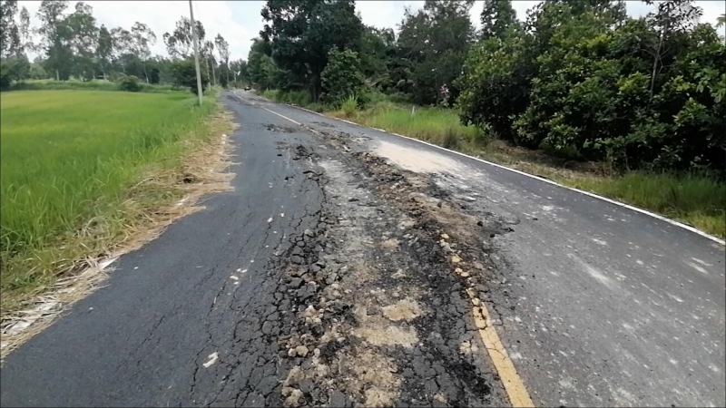 ชาวบ้านร้อง ถนนสร้างไม่ถึงปี วิ่งแป๊บเดียวพัง