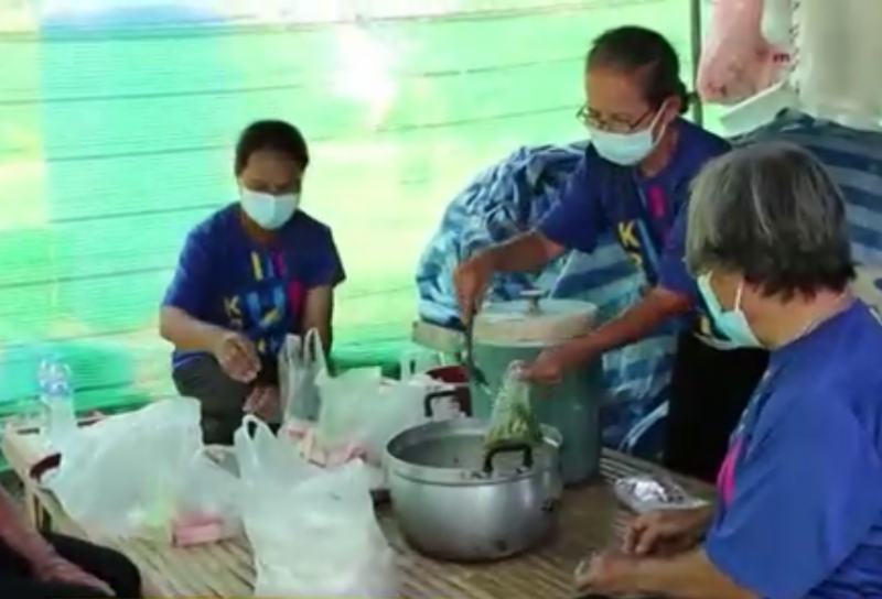 พร้อมทั้งการจัดตั้งโรงครัวให้ทีม อสม.จิตอาสาจัดหาอาหารให้ผู้ป่วยประจำจุดนี้วันละ 3 มื้อโดย รพ.พล สนับสนุนงบประมาณ ทั้งนี้ทุกวันในช่วงเช้าและเย็นจะสวมใส่ชุดป้องกันสะพายเครื่องขยายเสียงพูดคุยกันกลุ่มเสี่ยงและผู้ติดเชื้อที่พักบนกุฏิพระสงฆ์และศาลา
