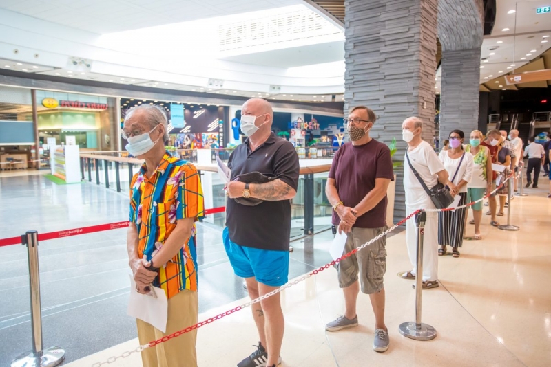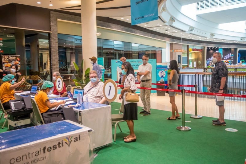 วันที่ 23 สิงหาคม 2564 ศูนย์การค้าเซ็นทรัลเฟสติวัล พัทยา บีช ร่วมกับโรงพยาบาลกรุงเทพฯ พัทยา จัดจุดฉีดวัคซีน เพื่ออำนวยความสะดวกให้กับชาวต่างชาติที่อาศัยอยู่ในพื้นที่เมืองพัทยาและพื้นที่ใกล้เคียงเข้ารับการฉีดวัคซีนป้องกัน cv-19 บรรยากาศบริเวณชั้น 6 ภายในศูนย์การค้าเซ็นทรัลเฟสติวัล พัทย า บีช พบว่ามีชาวต่างชาติเดินทางมารับการฉีดวัควัคซีนยี่ห้อไฟเซอร์ตามที่นัดหมาย จำนวนกว่า 800 คน