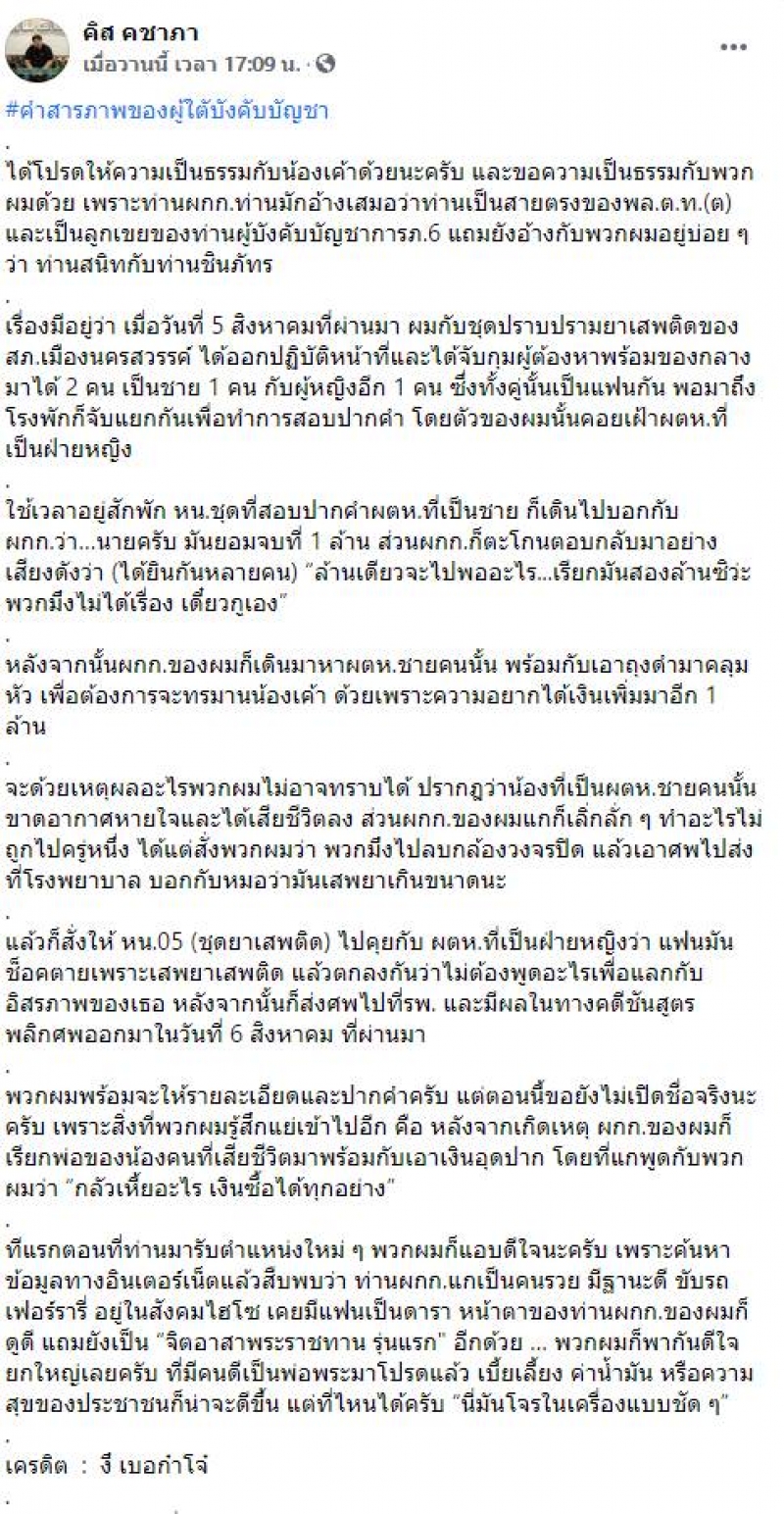 ผู้ใต้บังคับบัญชาของผู้กำกับโจ้ ที่เขียนคำสารภาพนี้ ระบุว่า