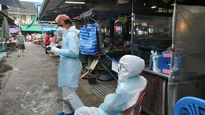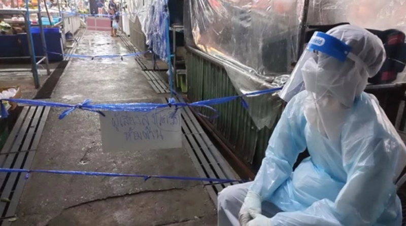 จากคลิปพบว่าแม่ค้าส่วนใหญ่ของให้หญิงสูงวัยรายดังกล่าวกลับบ้านไปกักตัว เนื่องจากเป็นผู้สัมผัสเสี่ยงสูงกับผู้ติดเชื้อโควิด จนกระทั่งเวลาต่อมาเจ้าหน้าที่ทีมงานเฉพาะกิจตอบโต้โควิค ส.ส.ยศวัฒน์ มาไพศาลสิน เดินทางมาถึงพร้อมกับสวมใส่ชุด PPE นำเชือกฟางมาขึ้นกั้นพื้นที่หน้าร้านของหญิงสูงวัยเพื่อป้องกันไม่ให้ใครเดินผ่านไปมาท่ามกลางการโต้คารมของหญิงสูงวัยและกลุ่มพ่อค้าและแม่ค้าที่ไม่มีใครยอมใคร