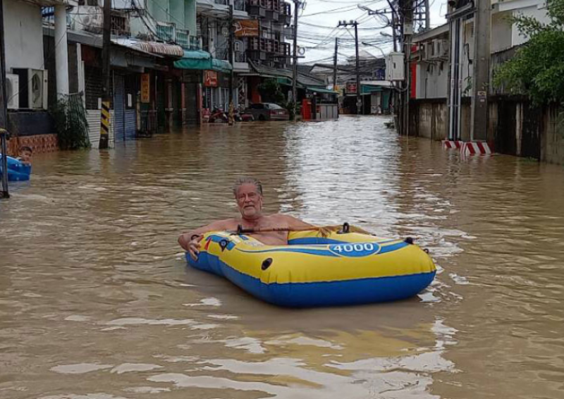 ทั้งนี้พบว่ามีทั้งคนไทย และชาวต่างประเทศ พากันนำเรือยาง เบาะลมยาง แม้กระทั่งเรือคายัก ออกมาพายเล่นล่องไปบนถนนที่น้ำท่วมขังราวกับอยู่ในแม่น้ำลำคลอง กันอย่างสนุกสนาน สร้างความงุนงงและเสียงฮือฮาให้กับผู้ที่จอดรถรอปริมาณน้ำลด และผู้ที่พบเห็นเป็นอย่างมาก