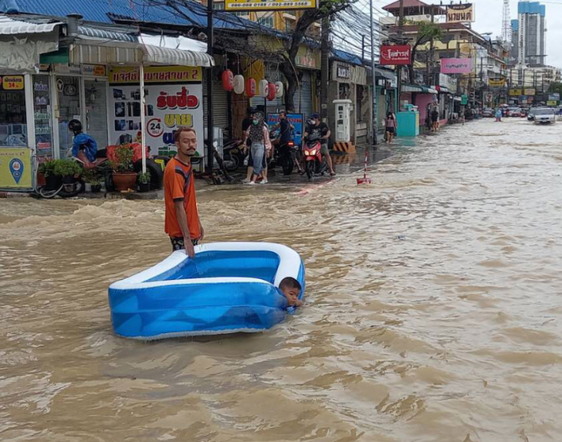 จากกรณีพื้นที่เมืองพัทยา อำเภอบางละมุง จ.ชลบุรี มีน้ำเอ่อท่วมสูงบนถนนในหลายจุด หลังฝนตกหนักติดต่อนานหลายชั่วโมง โดยบริเวณถนนพัทยาสาย3 และภายในซอยวัดธรรมสามัคคี มีปริมาณท่วมสูงมากกว่า 50 ซม. ทำให้การจราจร หยุดชะงักไปชั่วขณะ