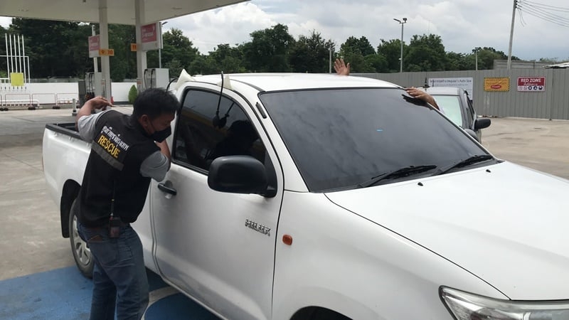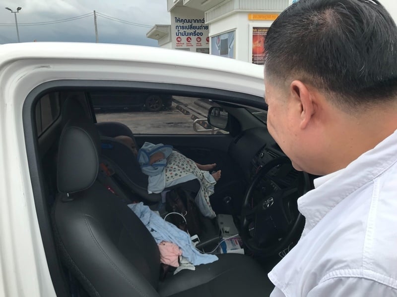นายสิริชาติ สมภักดี อายุ 48 ปีพ่อของเด็กเผยว่า มาจอดรถในปั๊มเพื่อเข้าห้องน้ำหลังจากจอดรถก็ได้สตาร์ทเครื่องเปิดแอร์ไว้ก่อนจะลงรถก็ตรวจสอบจับที่กระเป๋ากางเกงแล้วว่ามีกุญแจสำรองอยู่จึงได้ลงรถพร้อมกับล็อกรถทันที จนกระทั่งกลับมาที่รถเพื่อจะนำกุญสำรองนั้นไขประตูกับพบว่าเป็นกุญแจบ้านไม่ใช่กุญแจรถ เมื่อตรวจสอบถึงรู้ว่ากุญแจสำรองที่จริงแล้ววางอยู่ที่ข้างประตูของรถ ตอนนั้นตกใจมากจึงรีบประสานขอความช่วยเหลือจากเจ้าหน้าที่ทันทีจนเจ้าหน้าที่อาสาสมัครเข้ามาช่วยเหลือเปิดประตูให้ดังกล่าว