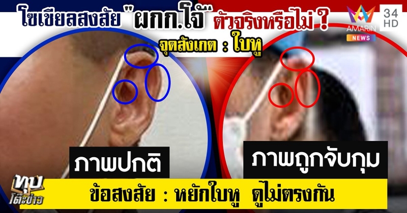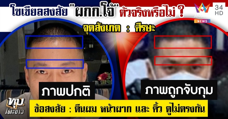 นอกจากนี้ สังคมโซเชียลติดตามการควบคุมตัว ผกก.โจ้ ผู้ต้องหา มีการจับพิรุธและสงสัยว่าเป็นผู้ต้องหาตัวจริงหรือไม่ เนื่องจากไม่เห็นใบหน้าชัดเจน ทั้งจับผิดภาพเทียบกัน ลักษณะตีนผมแตกต่างกัน บริเวณหน้าผากก็ต่างกัน ใบหูหยักไม่ตรงกัน อีกทั้งภาพที่ผกก.โจ้จับ บริเวณขาดูลีบยาว ซึ่งต่างกับภาพในอดีตนั้น