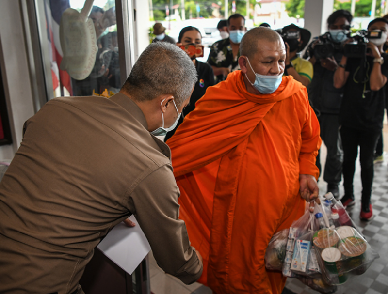 วันที่ 31 ส.ค.64 พระอานนท์ ธมฺมโชโต ที่เดินทางไปให้กำลังใจอดีต ผกก.โจ้ หลังจากที่วานนี้ วัดภัทรสิทธารามได้ออกหนังสือคำสั่งเจ้าอาวาส ให้พระอานนท์พ้นออกจากวัด เนื่องจากได้ปฏิบัติตนประพฤติผิดทางโลกวัชชะ
